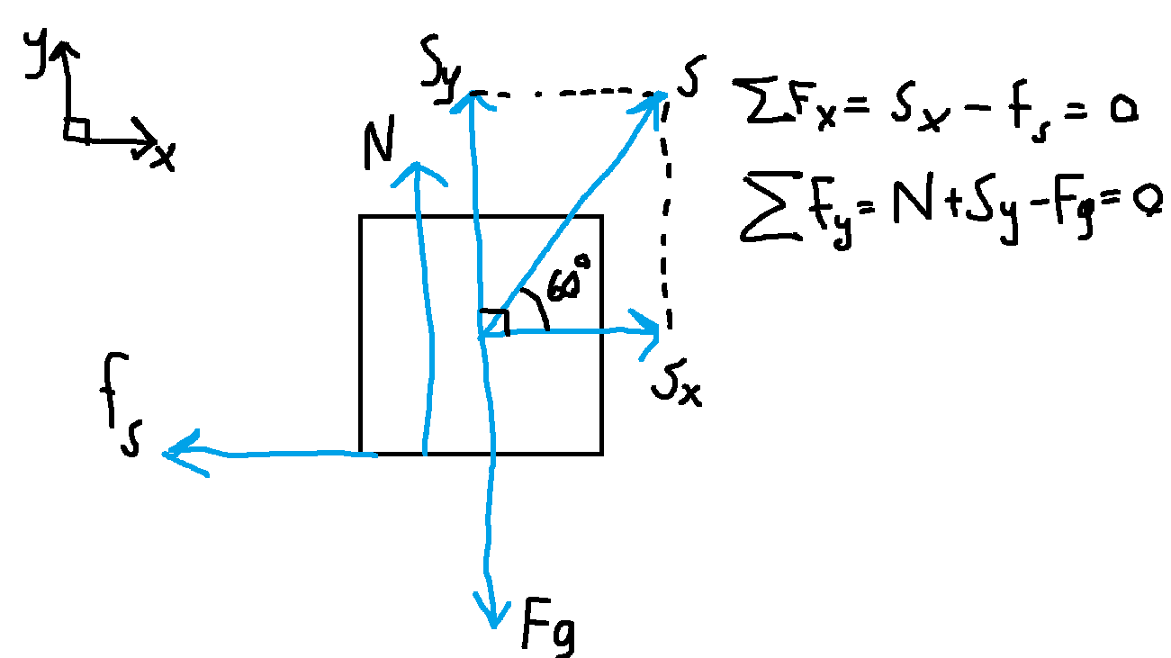 Yeah. När du väl har löst ut S kan du använda kraftjämvikten för klossen för att lösa ut normalkraften och friktionskraften vilket behövs för att bestämma koefficienten.