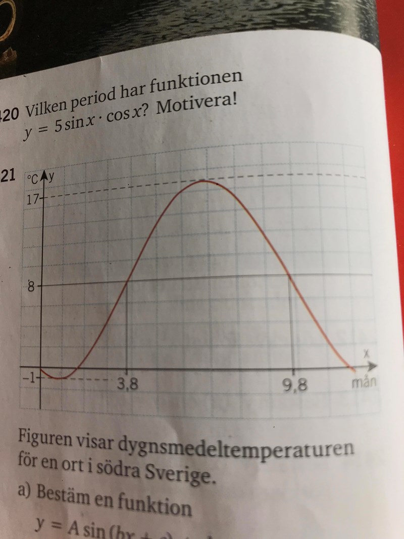 Knocksfruit skrev:Du har rätt när det kommer till att Amplituden är 9, då det är skillnaden mellan mittlinjen och max/min. samt att 'd' är 8, då det är mittlinjen.
