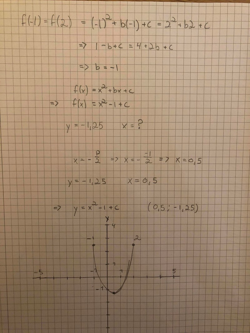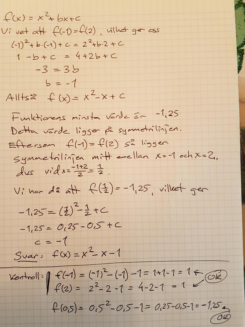 Jag har kommit fram till att f(-1)=f(2) ser ut såhär.