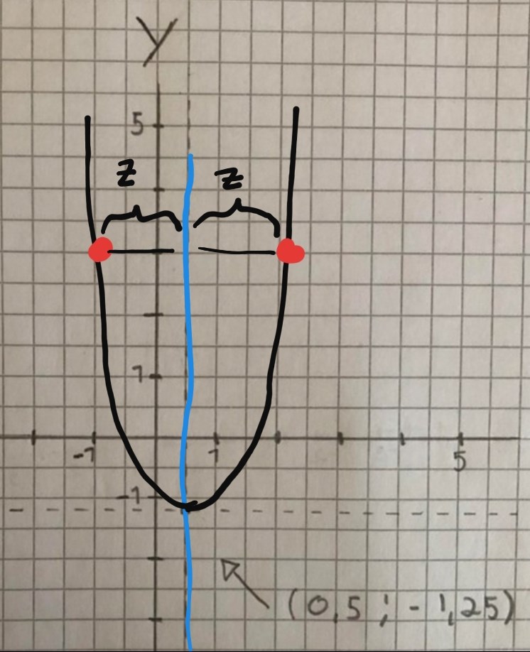 Du nämnde att  om symmetrilinjen t.ex.ligger vid x=x0 så gäller det att f(x0)= -1,25 vilket förvirrar mig lite.