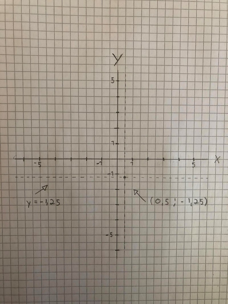 Du vet att minimipunkten har y-koordinaten -1,25 och att den ligger på symmetrilinjen.
