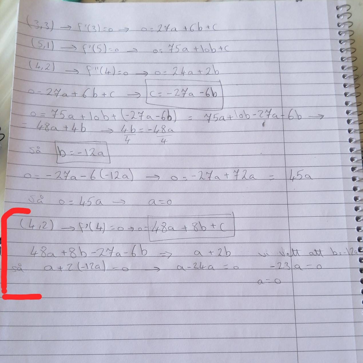 Här bilden kan visar hur jag kommit fram till att a = 0.