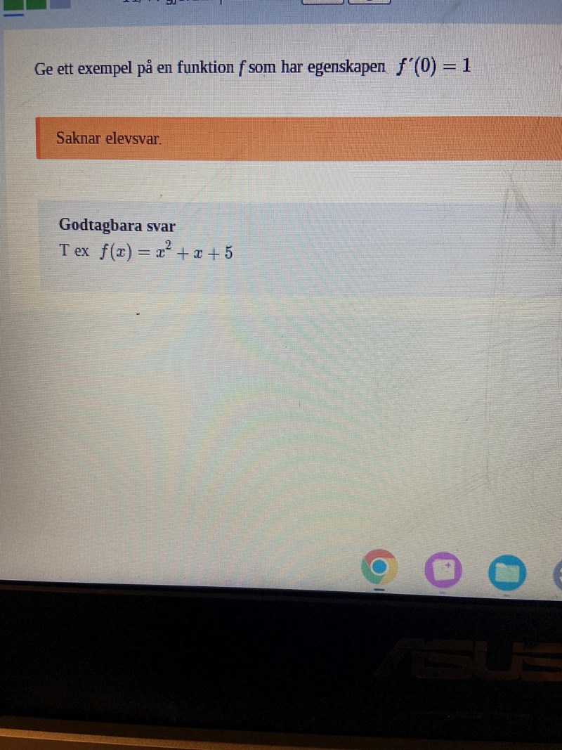 Hej, jag har gjort en bestäm en funktion som uppfyller detta villkor och mitt svar skiljer sig en del från facit. Är detta rätt?