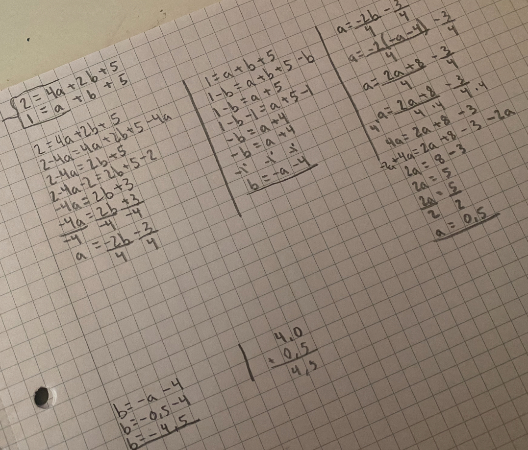 Tack för svaret. Har försökt att ställa upp ett ekvationssystem men jag får inte ut a/b värden. a tar ut sig själv när jag räknar fram det?