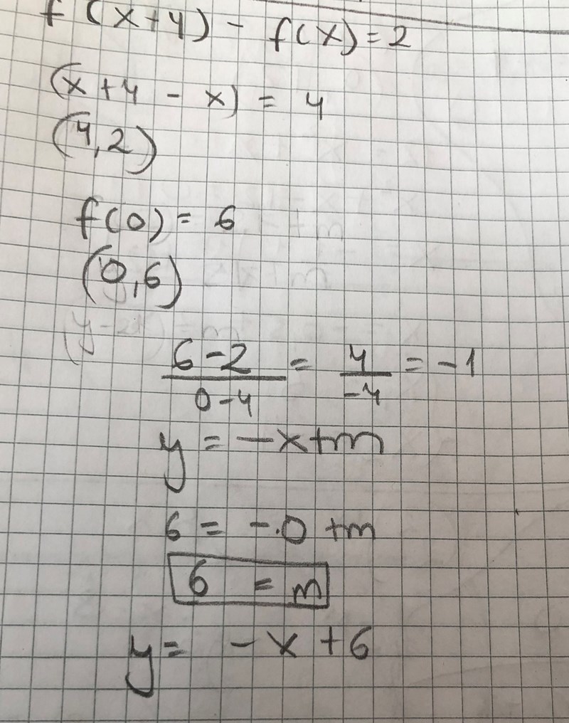 där det för varje värde på x gäller att f(x+4) – f(x) = 2.
