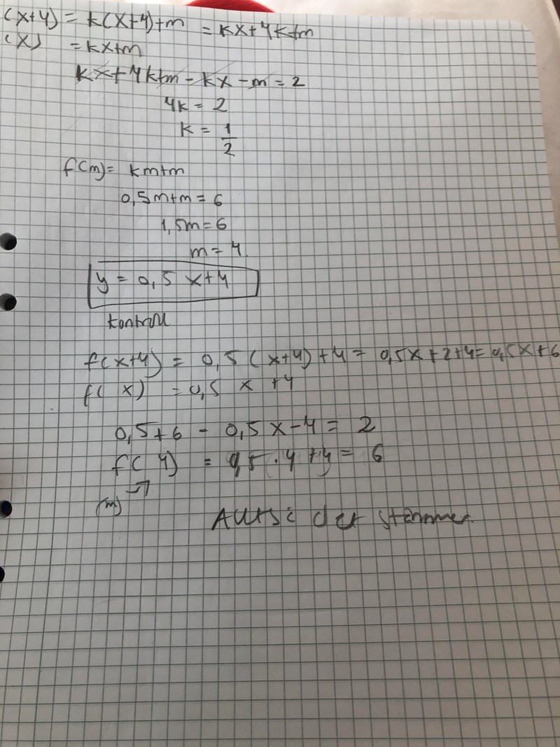Vi får t ex veta att det handlar om en rät linje, y = f(x) = k·x + m ,