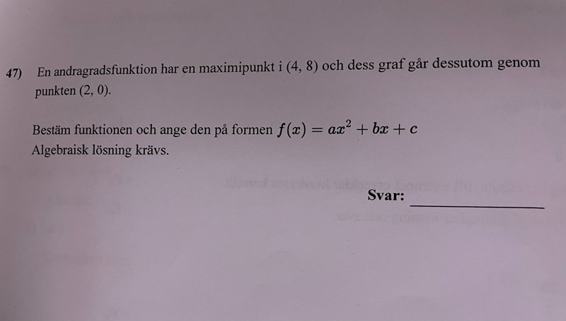 Bestäm funktionen f(x) = ax^2 + bx + c