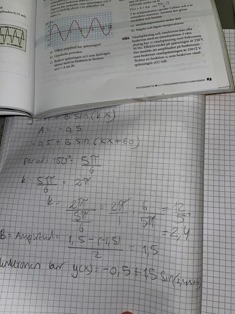 Med sin(kx+C) ger det ekvationen: