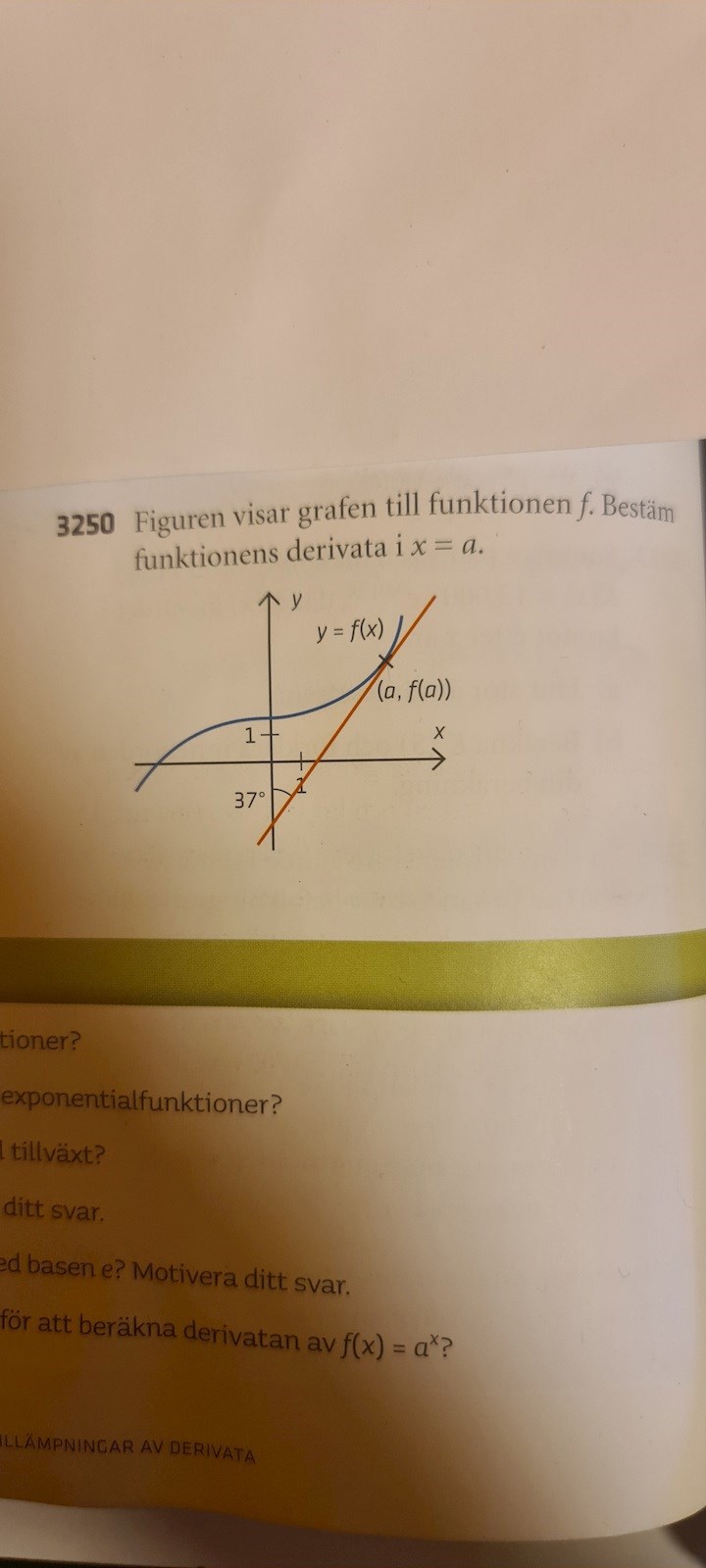 Hej! Jag har lite svårt att göra något mer än att försöka utnyttja Dy/Dx när det bildas en triangel. Vet inte hur jag ska fortsätta med vinkeln.