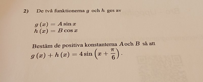 eller vad jag hittade sin(a+b)=sina⋅cosb+cosa⋅sinb