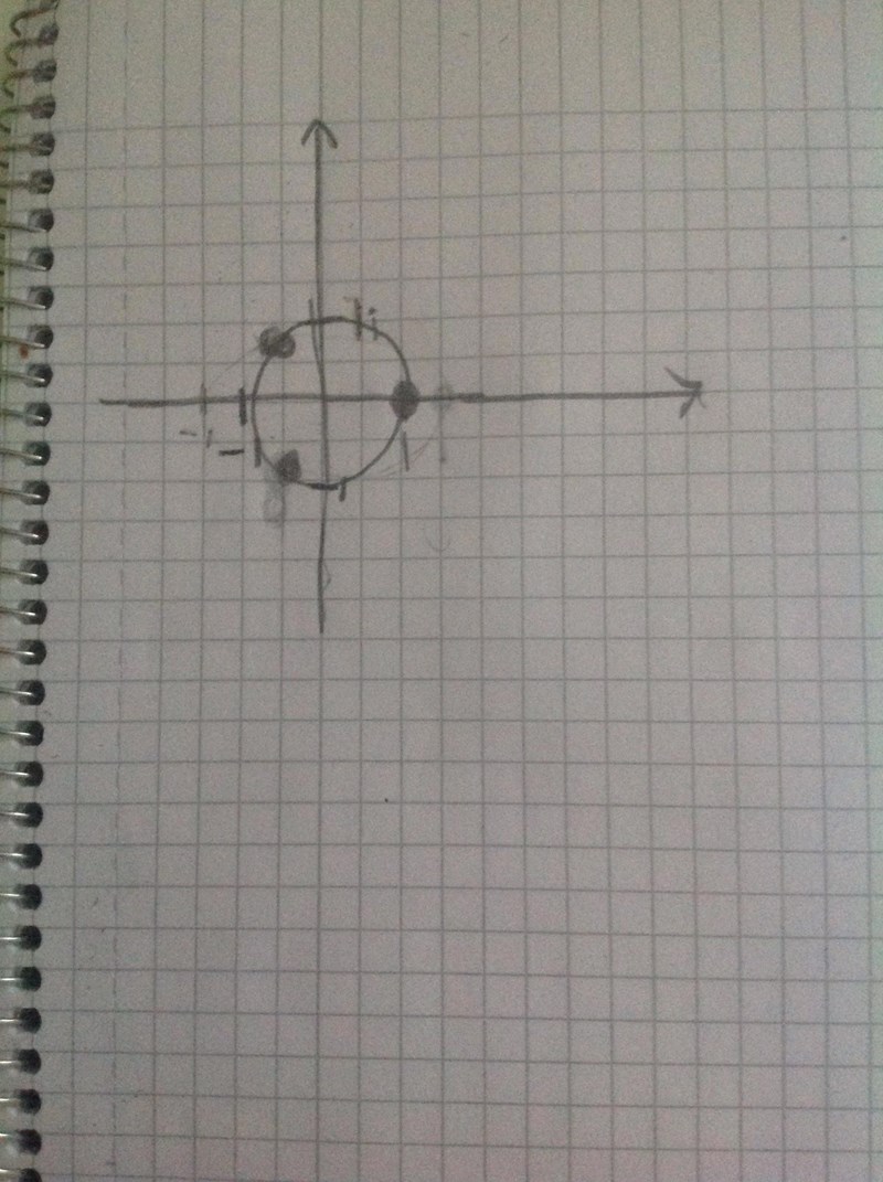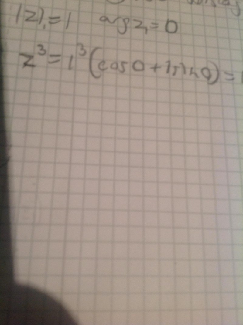 Det är i alla fall så jag skulle börja för att lösa den här uppgiften. Då ser du att de tre talen ligger på en cirkel i det komplexa talplanet, så att |z1|=|z2|=|z3||z_1|=|z_2|=|z_3|. Vinkeln förstår jag inte varför du vill räkna ut, men den får du fram som arctan(imaginärdel)/(realdel) - tänk på att använda radianer, inte grader.