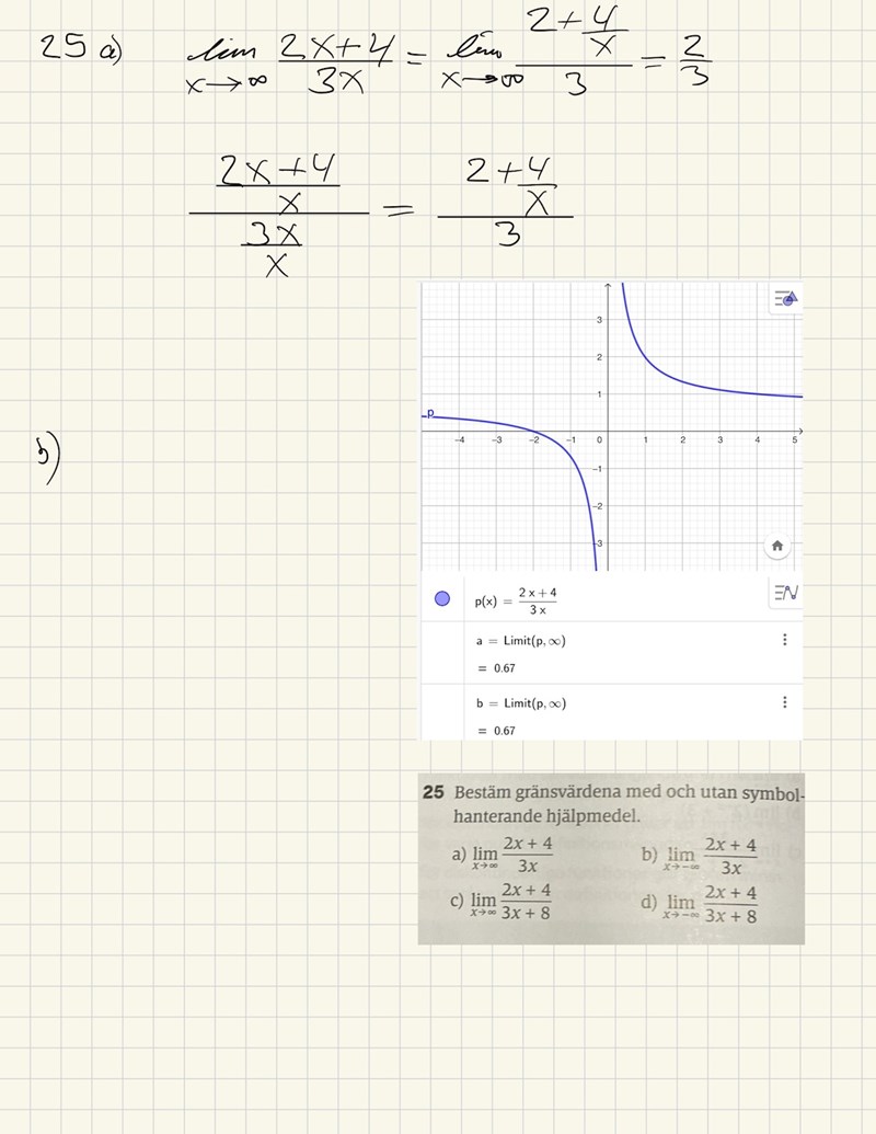 ponera att jag inte löst a) och inte sett grafen, dvs att gränsvärde saknas..