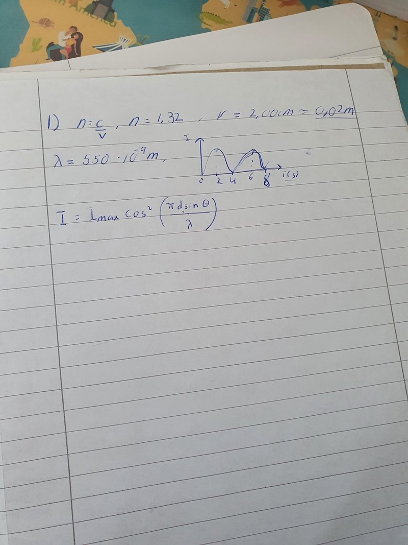Vad betyder n = 132? Sedan verkar du ha skrivit upp ringens radie och ljusets våglängd.