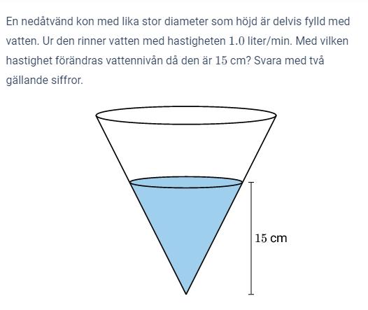 Det är samma fart som vattenytan i konen har i det ögonblick som arean är A.