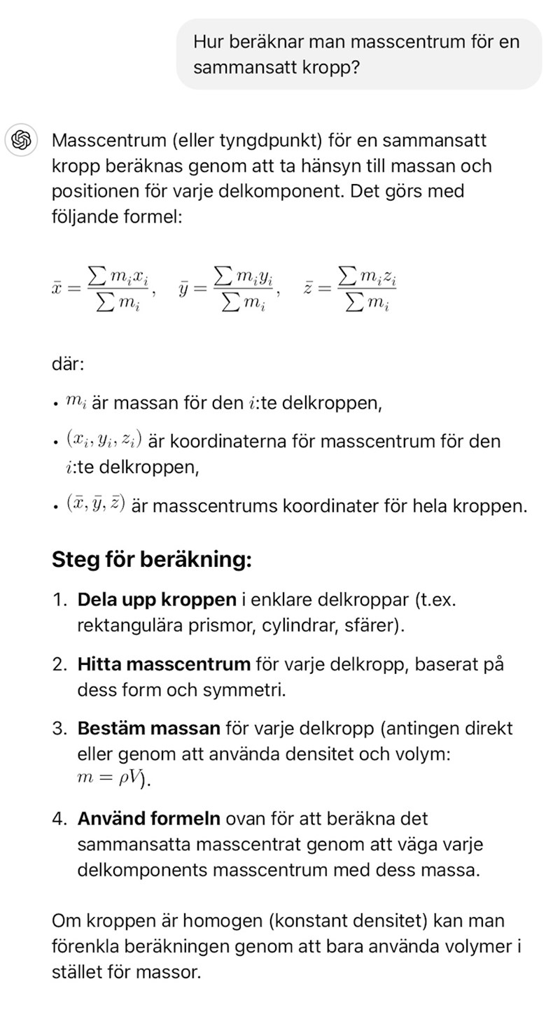 Det finns en formel för hur man beräknar masscentrum för en sammansatt kropp. Kolla lärobok eller chatGPT.