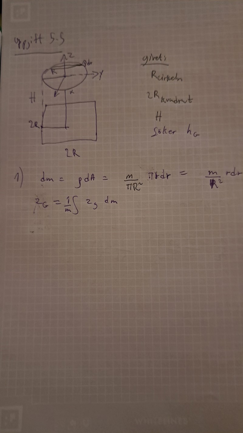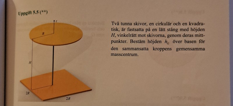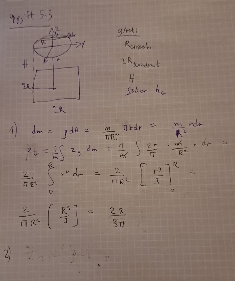 Jag började hitta masscentrum för cirkeln och kom framt till detta. Jag tänkte nu hitta masscentrum för kvadraten för att sedan addera dem så att vi får H.