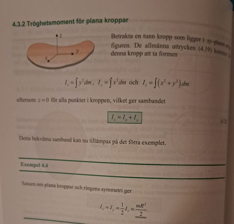 Nej, just det. I det fallet har du en plan figur i xy-planet. Nu har du en plan figur i yz-planet. Men du kan enkelt använda satsen mutatis mutandis genom att inse att i detta fall så spelar x-axeln samma roll som z-axeln i boken.