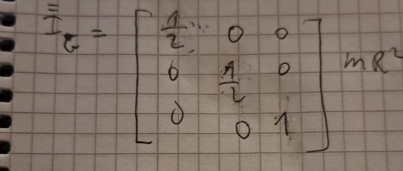 IGαβ=mr2000mr22000mr22\left(I_G\right)_{\alpha\beta}=\begin{pmatrix}mr^2 & 0 &0\\ 0 & \frac{mr^2}{2} & 0 \\ 0 & 0 & \frac{mr^2}{2}\end{pmatrix}
