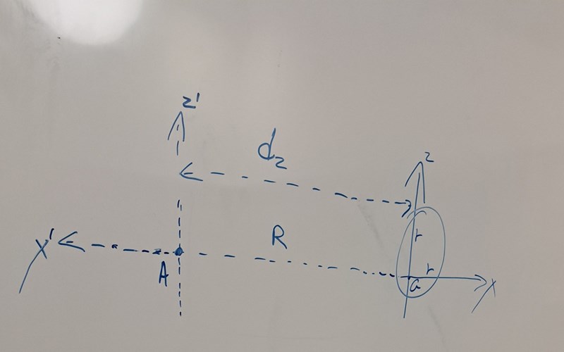 Jag tänker det makear sense att Izz för A har dz=R+r  (vinkelrät avstånd) men jag ser inte hur det blir för y och x när man ska finna det vinkelräta avståndet från G till A. Jag försökte med denna figur men det blev ganska jobbigt att tänka sig.