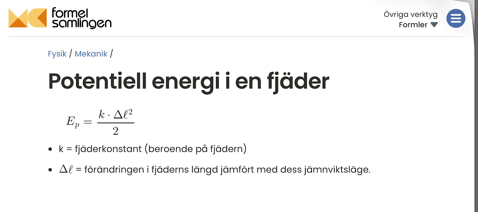 Men det här med Etopp och Ebotten var jag inte med riktigt på. I Etopp dvs där han står vid bro så han har lägesenergi , men ingen fjäder energi, varför ingen fjäderenergi?