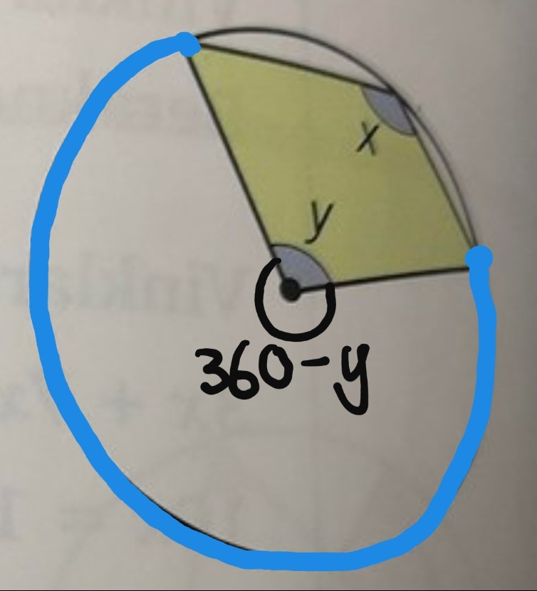 Alltså att vinkeln 2x är lika stor som vinkeln 360-y?