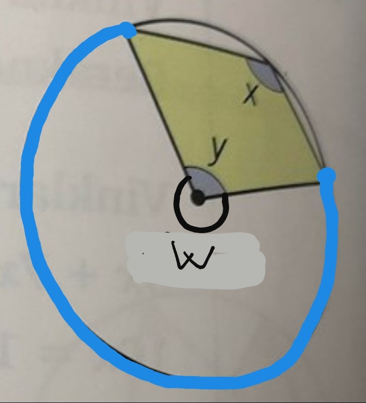 Om ja, är du då även med på att y+w = 360, dvs att w = 360-y?