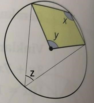 Är du med på att z är en randvinkel på samma båge som medelpunktsvinkeln y? Hur stor är medelpunktsvinkeln y om randvinkeln är z?