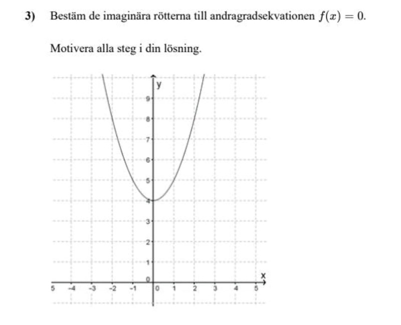 Nu ska du lösa uppgiften och hitta dom imaginära rötterna.