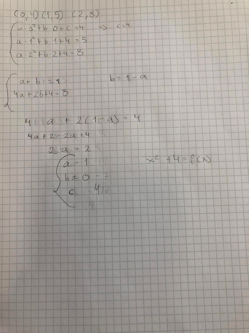 Ekvationen på första raden i din lösning säger att när x är 1 så är y noll. Det stämmer inte med bilden!