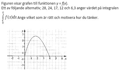 Smaragdalena skrev:En triangel med basen 4 och höjden 6,5 har arean 13. Arean under kurvan är större, man bara lite större. Det finns bara ett värde som stämmer med detta.
