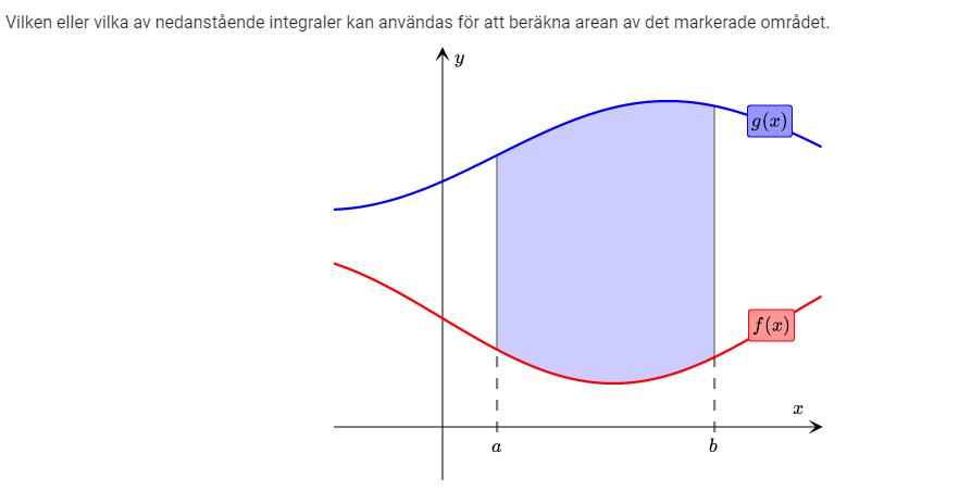 integralen för g(x) fr. a till b - integralen för f(x) fr. a till b