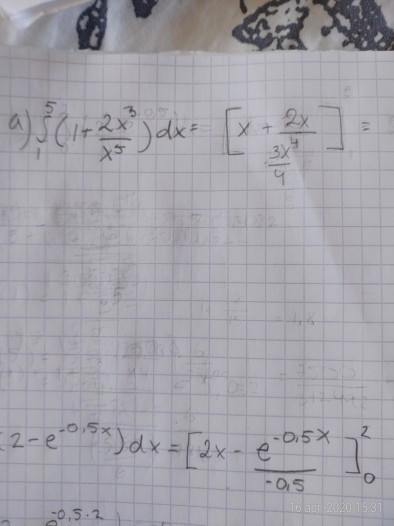 Gandalfrida skrev:Smaragdalena skrev:Nej, förenkla 2x3/x5 innan du tar fram en primitiv funktion.