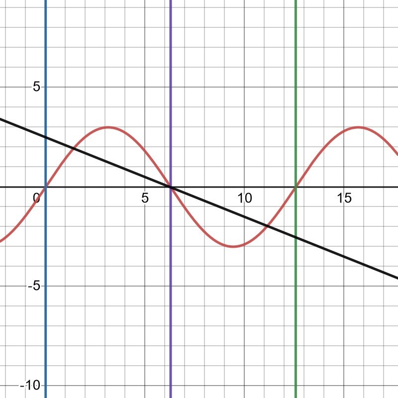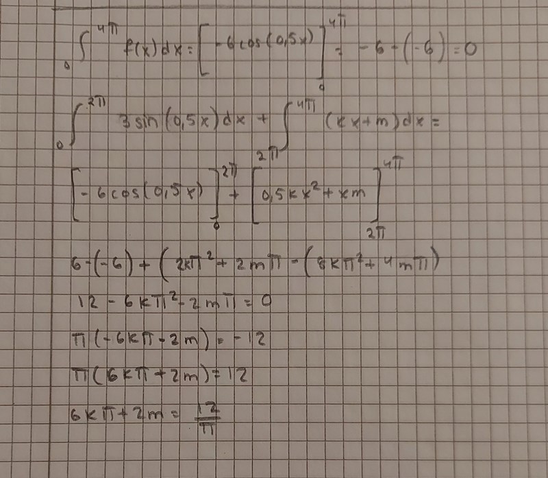 Nej, triangelns area skall vara lika stor som arean av -f(x) från 2π2\pi till 4π4\pi.