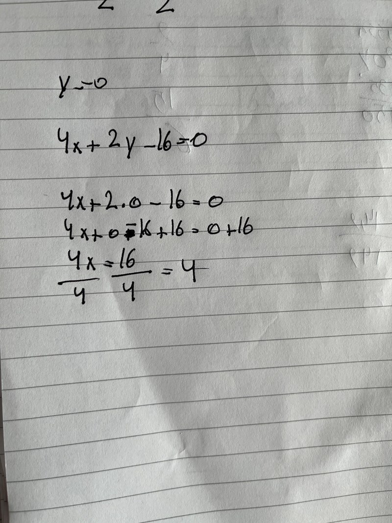 Du satte y lika med noll och räknade fram x=1. Det betyder att linjen skär x-axeln där x=1.