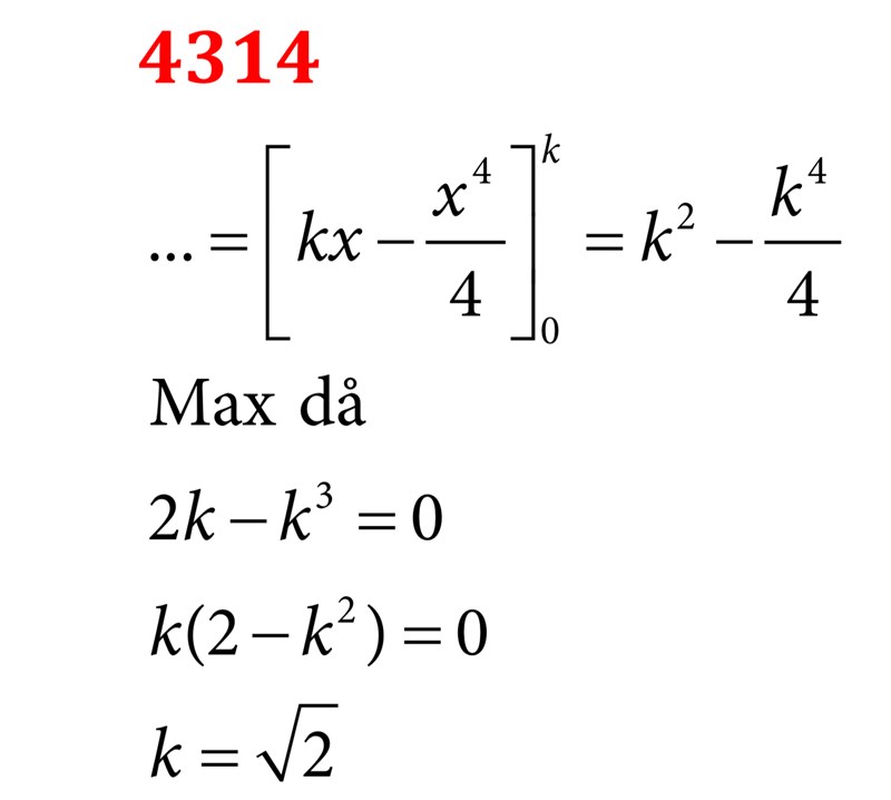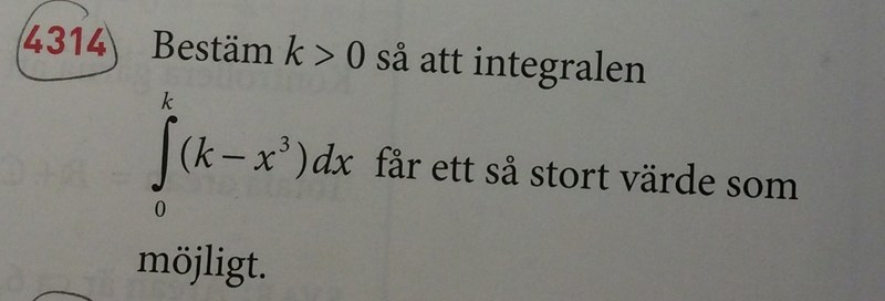 Bestäm k så att integralen får så stort värde som möjligt
