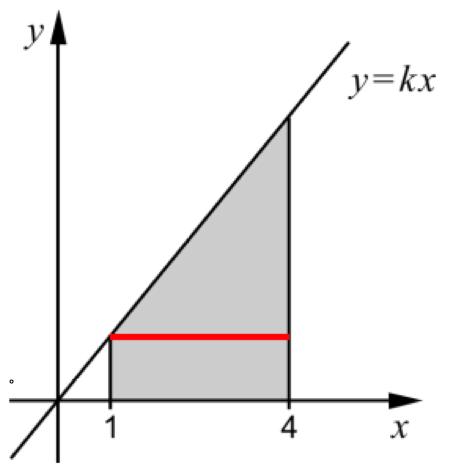 bestäm k värdet algebraiskt då figuren har exakt 10 area enheter och k0