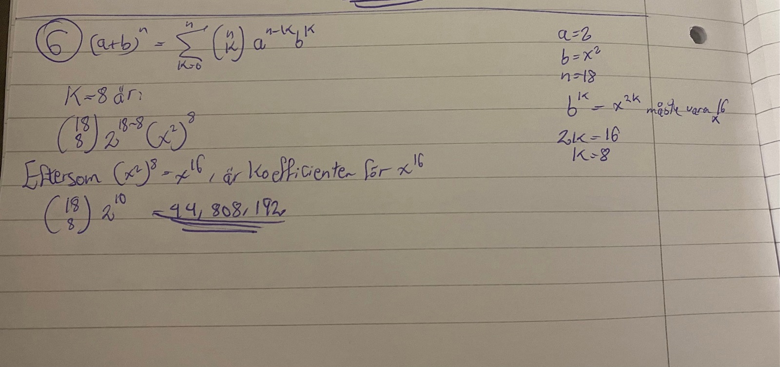 Frågan lyder: "Bestäm koefficienten för i utvecklingen av "