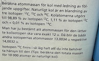 Jag är 0,0001 ifrån vad som faktiskt står i det periodiska systemet, men jag antar att det är eftersom att jag inte tog med kol-14 i min beräkning.