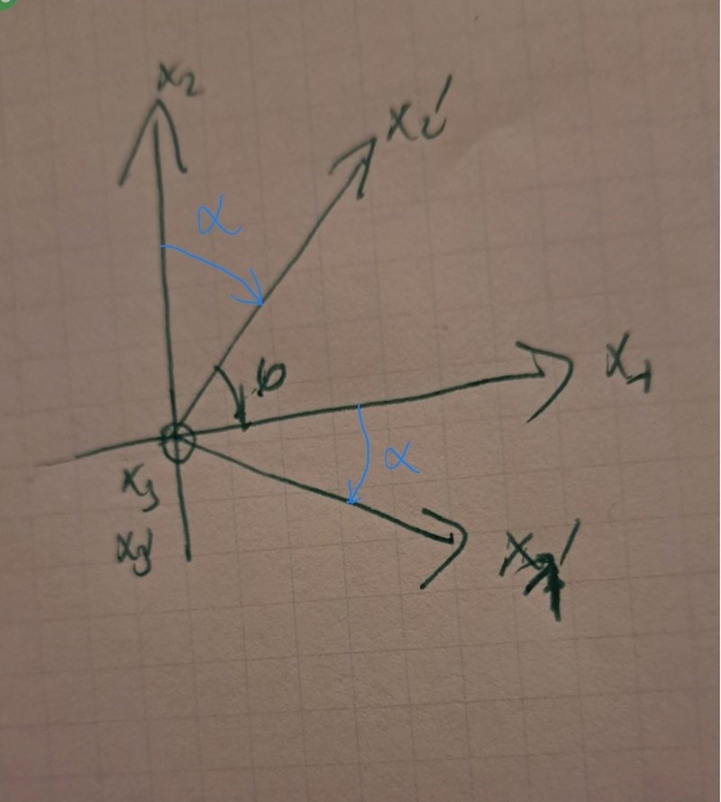 Lite svårt att förstå den. Börja med ett läge där de primmade och oprimmade vektorerna sammanfaller. Vrid sedan de primmade vektorerna en vinkel alfa medurs eller moturs kring x3 axeln.