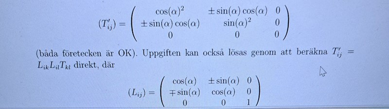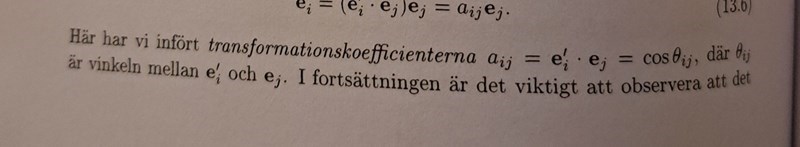PATENTERAMERA skrev:Lite svårt att förstå den. Börja med ett läge där de primmade och oprimmade vektorerna sammanfaller. Vrid sedan de primmade vektorerna en vinkel alfa medurs eller moturs kring x3 axeln.