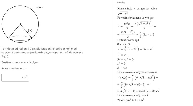 Bestäm konens maximivolym