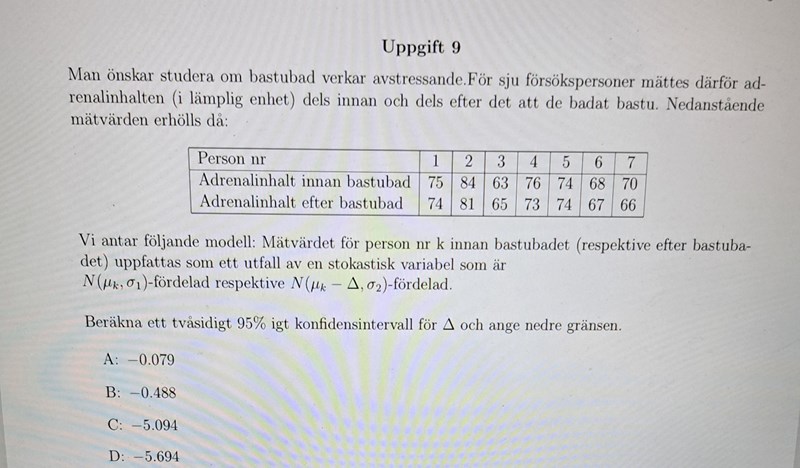 Aa jag korrigerade nu. Men jag får nedre gränsen till -0.4108 och det finns inte bland alternativen.