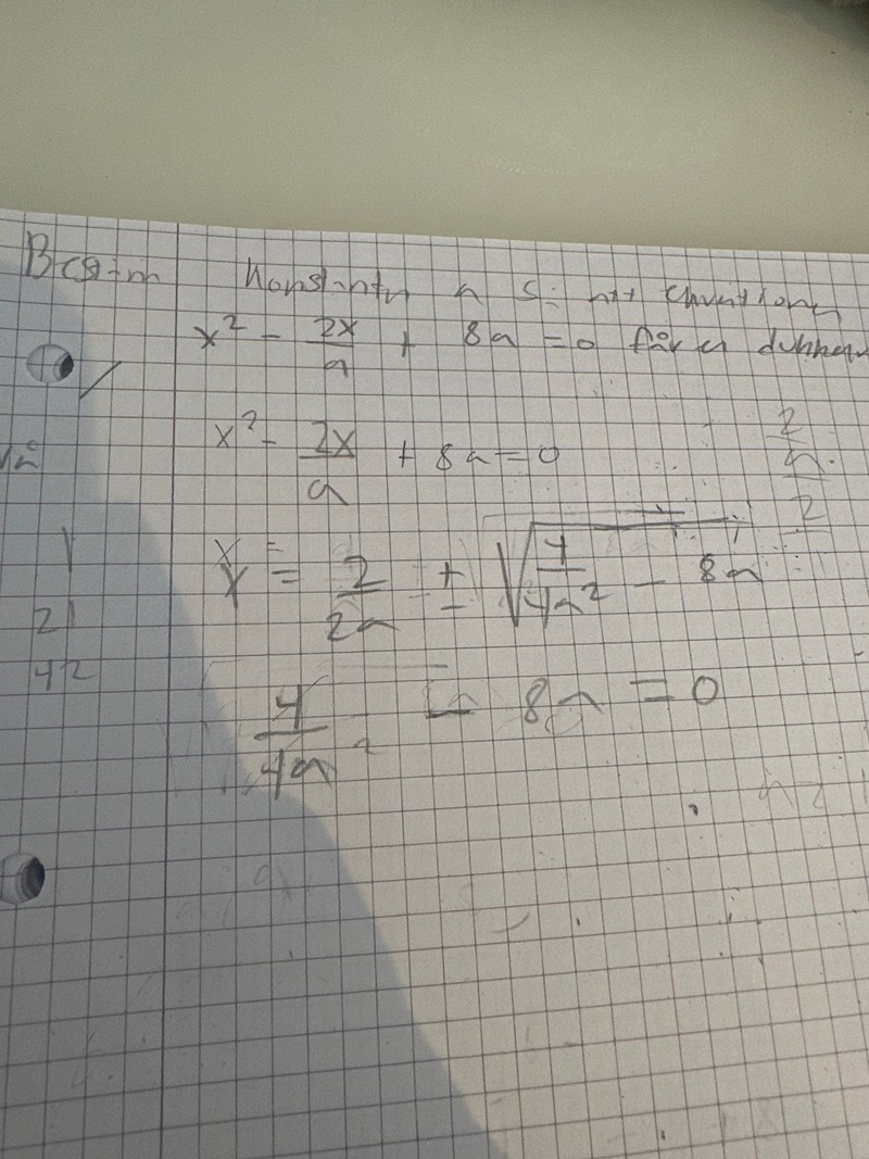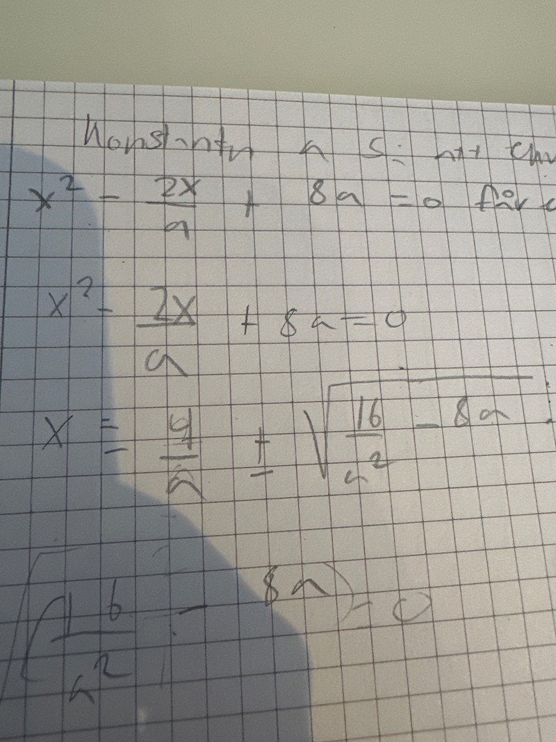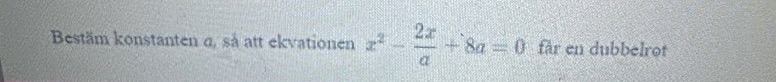 Jag vet inte exakt hur jag ska lösa detta. Kommer svaret att vara något som typ ”a>” att man svarar a ska vara större än något. Eller är det ett exakr svar där jag behöver säga exempelvis att A behöver vara 2 Hur ska man lösa detta. Jag skrev ändå upp till pq formeln men jag kommer inte fram mer