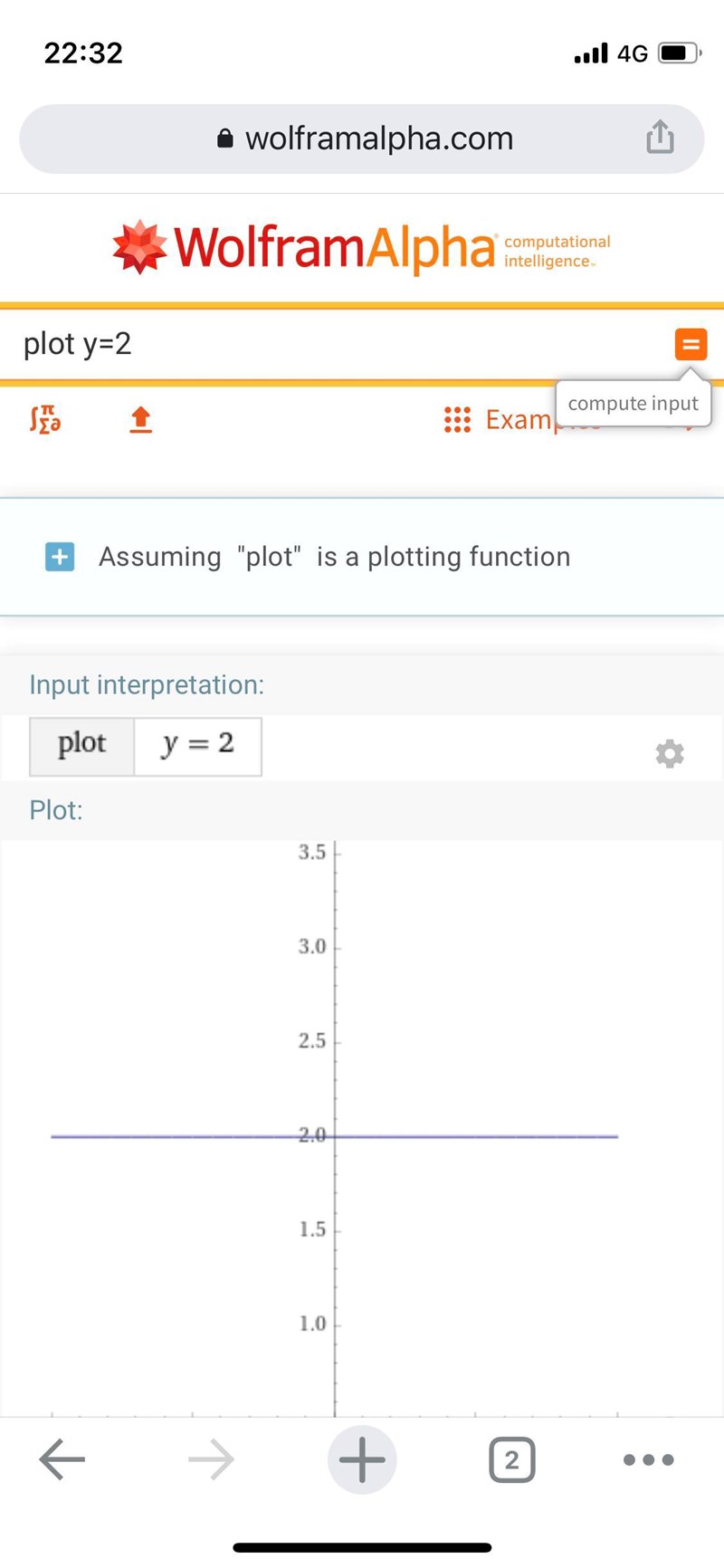 Vilken lutning skall kurvan ha i den punkt där den tangerar linjen y = 2?