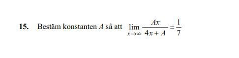 Bestäm konstanten A så att limx->inf = 1/7