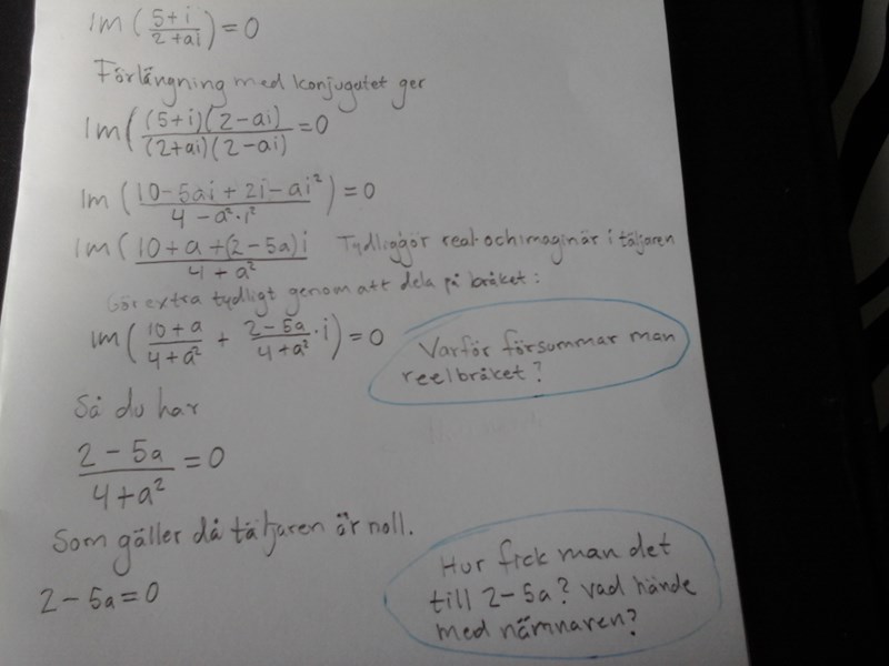 Bestäm konstanten a så att talet: 5+i / 2+ai blir reelt?