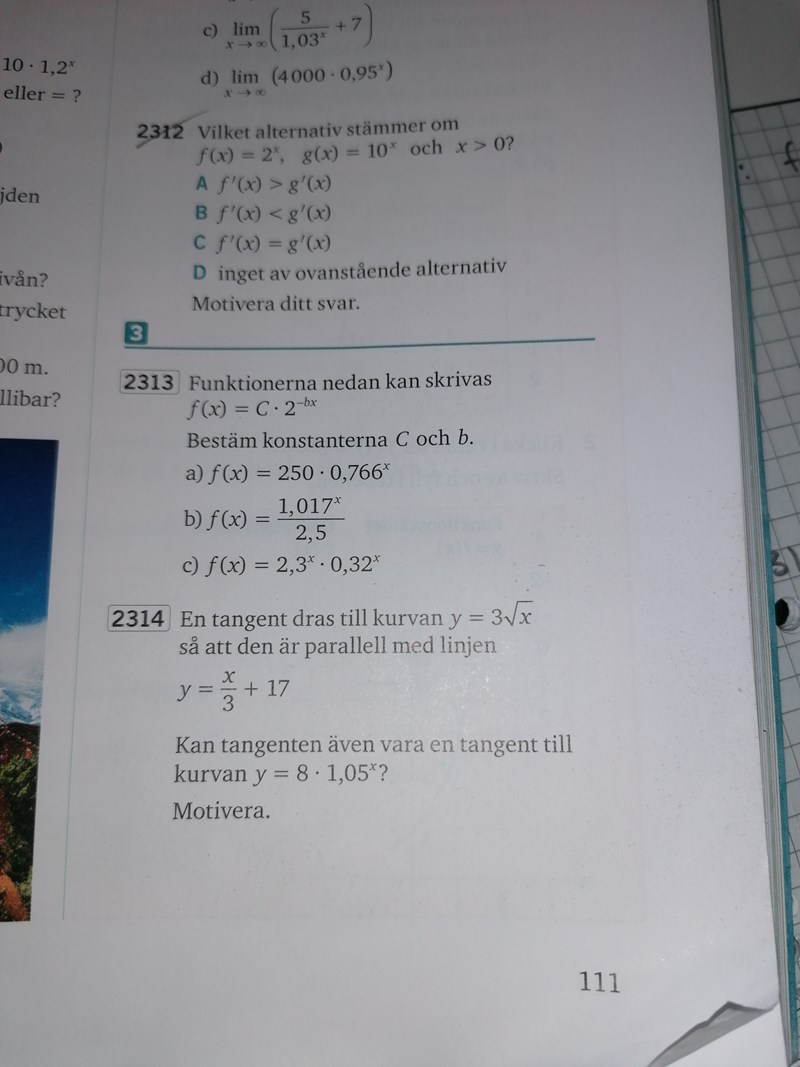 Hej. Jag behöver hjälp på uppgift 2313. Jag vet att jag behöver tillämpa någon logaritmlag, vilken vet jag dock inte.