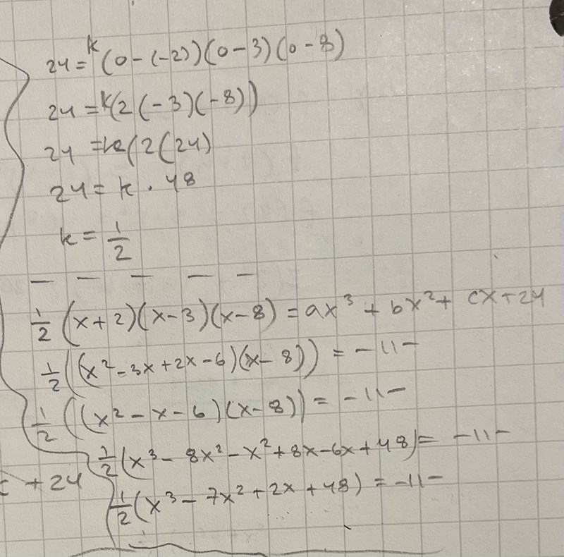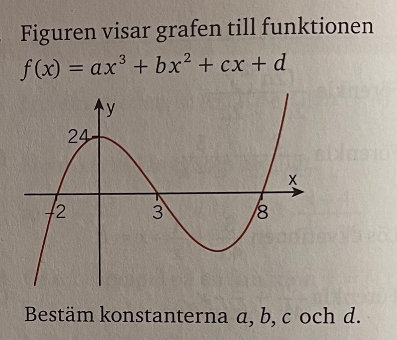 i ditt fall: k(x+2)(x-3)(x-8) = ax3+bx2+cx+24