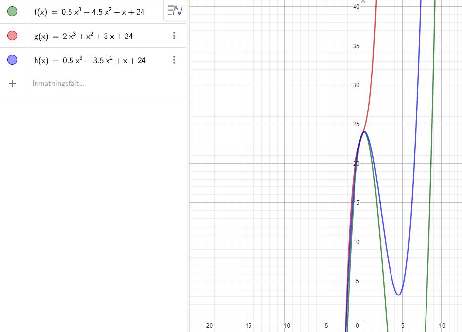 Jag har bara följt tråden översiktligt. Men jag matade in funktionerna i GeoGebra.