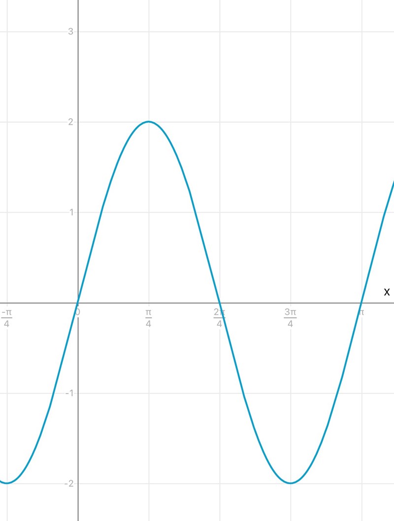 Du kan tänka att det står y = (-1)•1•sin(2x) + 2, där den andra ettan är amplituden och den första ettan med minustecken indikerar att grafen är speglad i jämviktsläget y = 2.